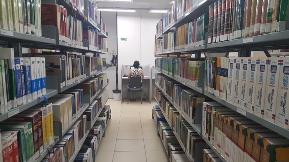 - Acervo Geral: livros, trabalhos de conclusão de curso, monografias e teses. Estes materiais podem ser retirados para empréstimo domiciliar; porém, livros com tarja vermelha na lombada só podem ser consultados no local.