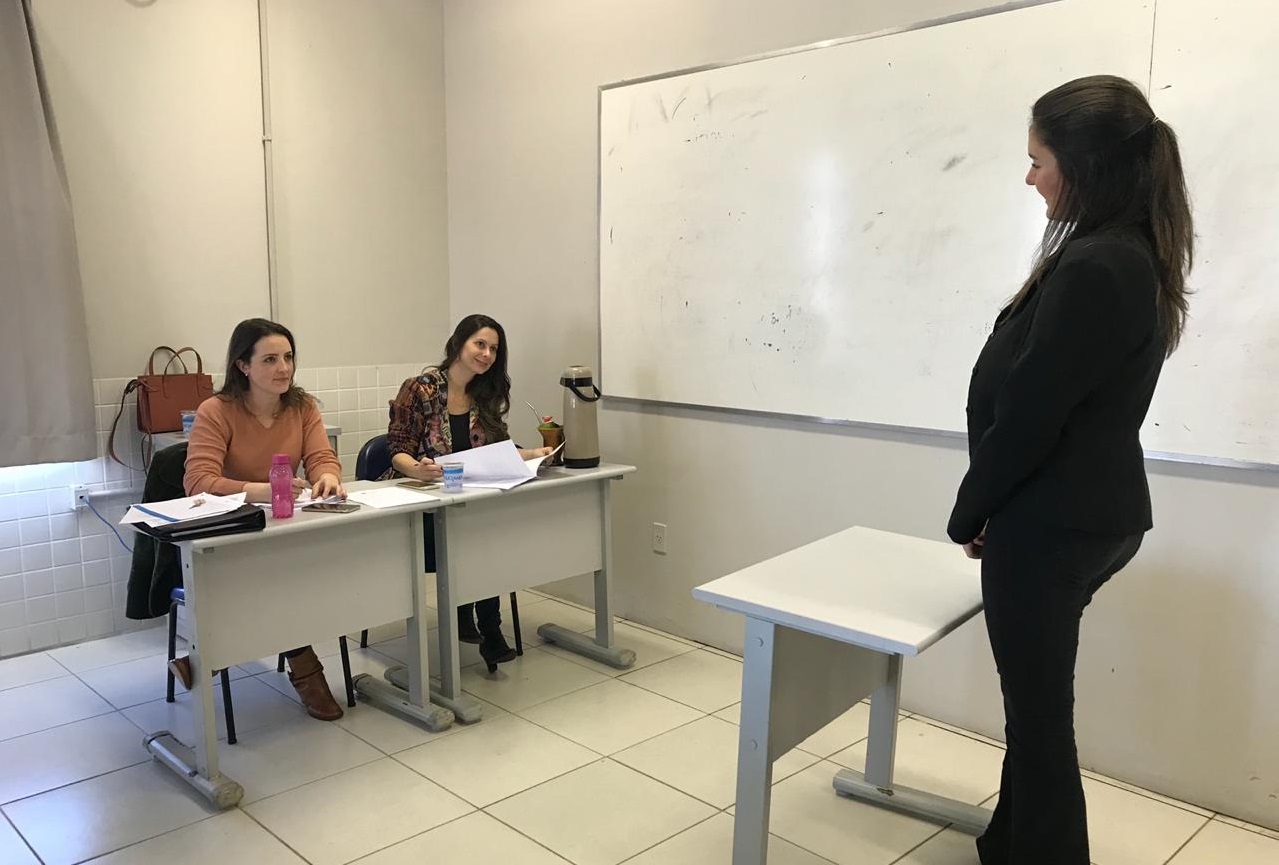 Os alunos matriculados na disciplina de TCC I, ministrada pela professora Flávia Cocco, passaram recentemente pela experiência de se verem frente à uma banca defendendo seu projeto. A atividade avaliativa de caráter simulado tem o objetivo treinar questões como postura e oratória, dominar situações de ansiedade, nervosismo, formular respostas aos questionamentos, entre outros pontos importantes.