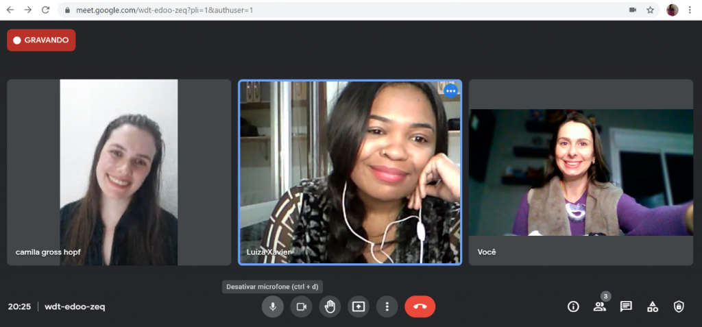 A professora Candisse Schirmer com as alunas Camila Hopf e Luiza Xavier, do Curso de Ciências Contábeis, em uma sessão das Mentorias de Trabalhos Acadêmicos.