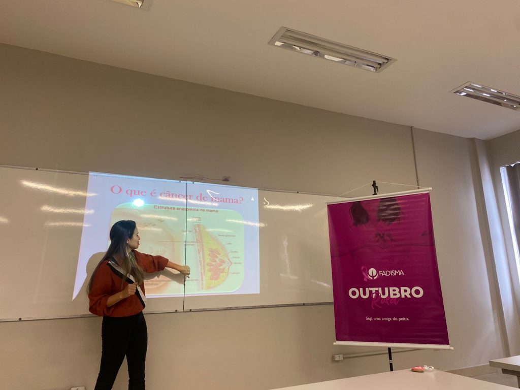 A palestra integra a programação do Outubro Rosa na FADISMA, campanha internacional que busca chamar a atenção da sociedade para o diagnóstico precoce da doença.