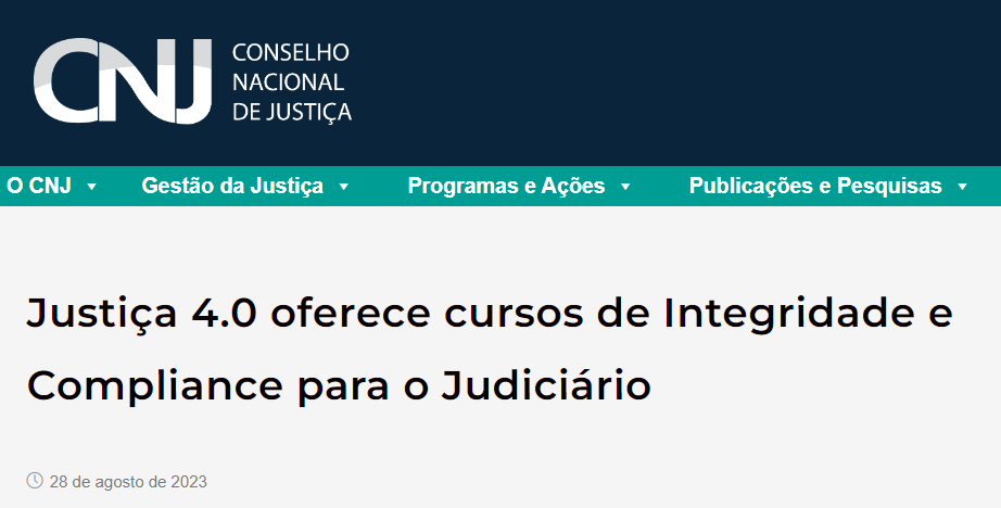 Em matéria publicada em 28 de agosto, o Conselho Nacional de Justiça (CNJ), instituição pública que visa aperfeiçoar o trabalho do Judiciário brasileiro, principalmente no que diz respeito ao controle e à transparência administrativa e processual, referencia a nossa Instituição, reconhecida nacional e internacionalmente pela sua bagagem na seara de Compliance, Proteção de Dados e Políticas Corporativas.