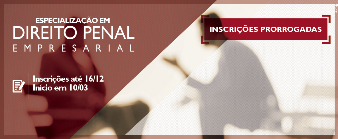 Os interessados em especializar-se em Direito Penal Empresarial ganharam uma segunda chance. A Coordenação do Curso informou recentemente que as inscrições foram prorrogadas até o dia 16 de dezembro e, com um novo cronograma, as aulas terão início em 10 de março de 2017.