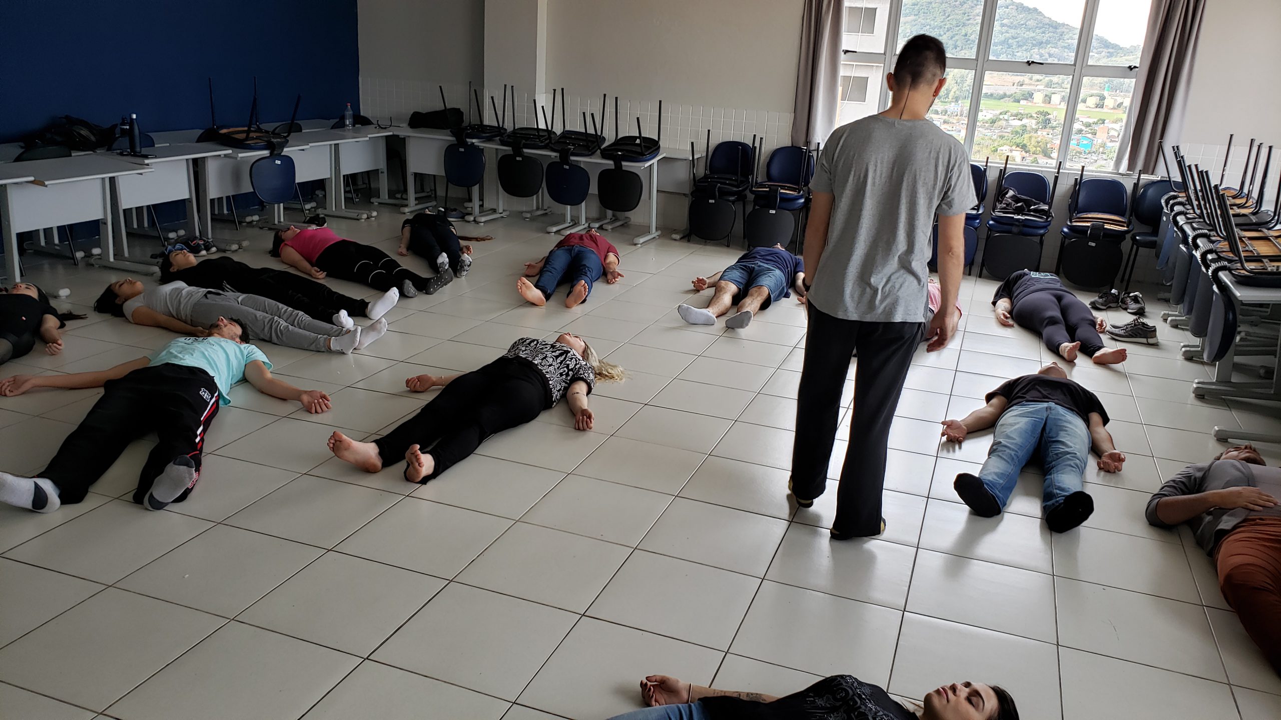 Ao longo de três horas, os alunos experimentaram sensações diversas, por meio de técnicas oriundas do teatro, trocas e diálogo sobre situações que exigem exposição pública e seus desafios.