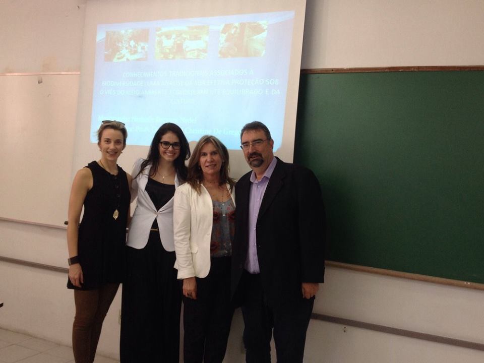 A tarde do dia 29 de outubro foi especial para a professora Nathalie Kuczura Nedel . Ela defendeu, tendo aprovação com louvor, a dissertação “Conhecimentos tradicionais associados à biodiversidade: Uma análise da sua efetiva proteção sob o viés do meio ambiente ecologicamente equilibrado e da cultura”.