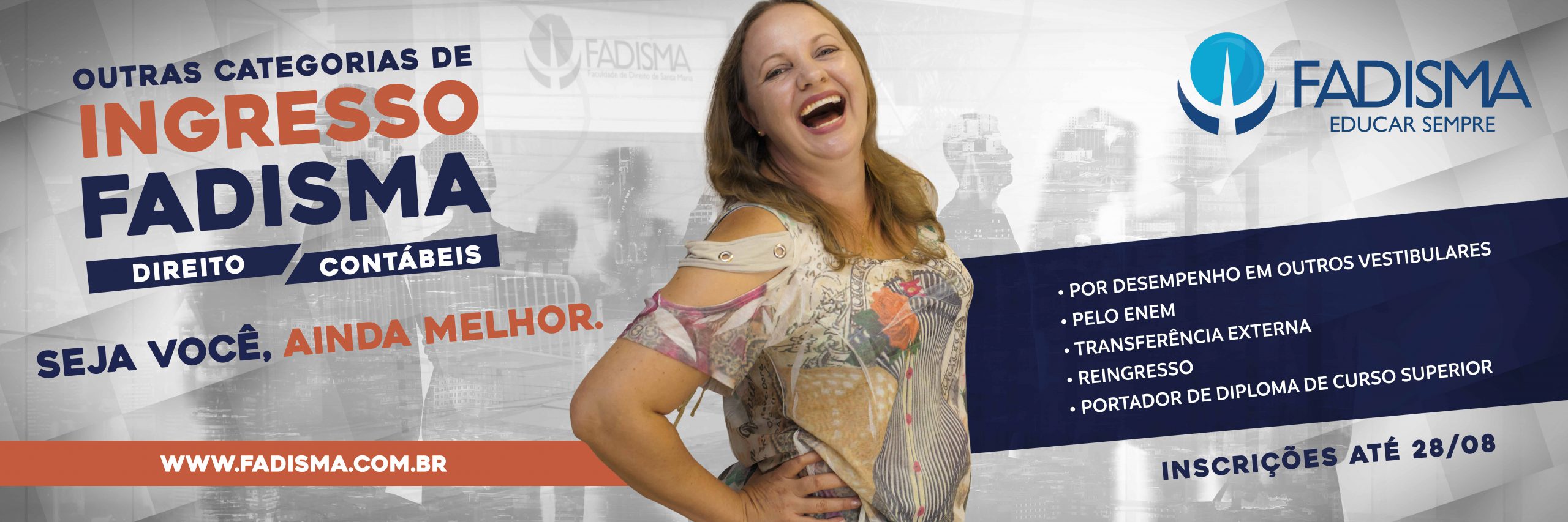 Iniciar uma faculdade em 2018 ainda é possível – a FADISMA está com inscrições aberta para as Outras Categorias de Ingresso até o dia 28 de agosto! As Outras Categorias são oportunidades que contemplam pessoas interessadas em iniciar uma graduação mesmo sem ter passado pela prova do Vestibular.